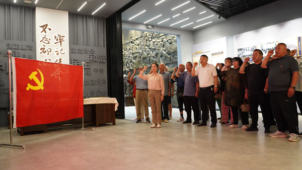 參館完成后,參訪人員集中觀看了2023年春晚情景劇《紅色的火種》,隨后在黨旗下莊嚴(yán)宣誓,重溫入黨誓詞。